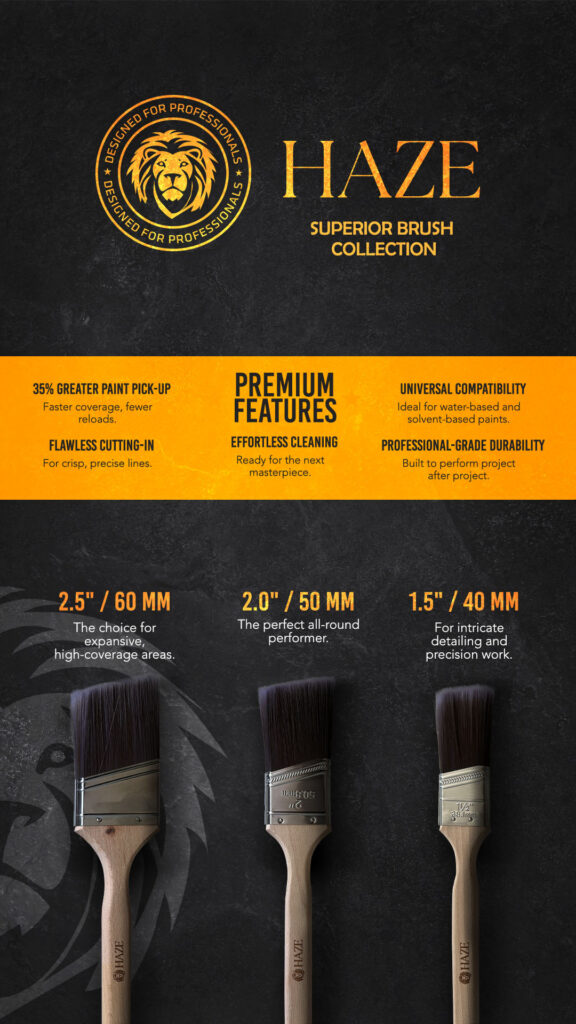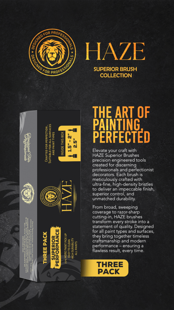Professional-grade brushes designed for ultimate control, flawless lines, and lasting performance. Featuring ultra-fine synthetic bristles, ergonomic wooden handles, and superior paint pick-up — the HAZE Superior Brush Collection redefines precision and durability for trade professionals